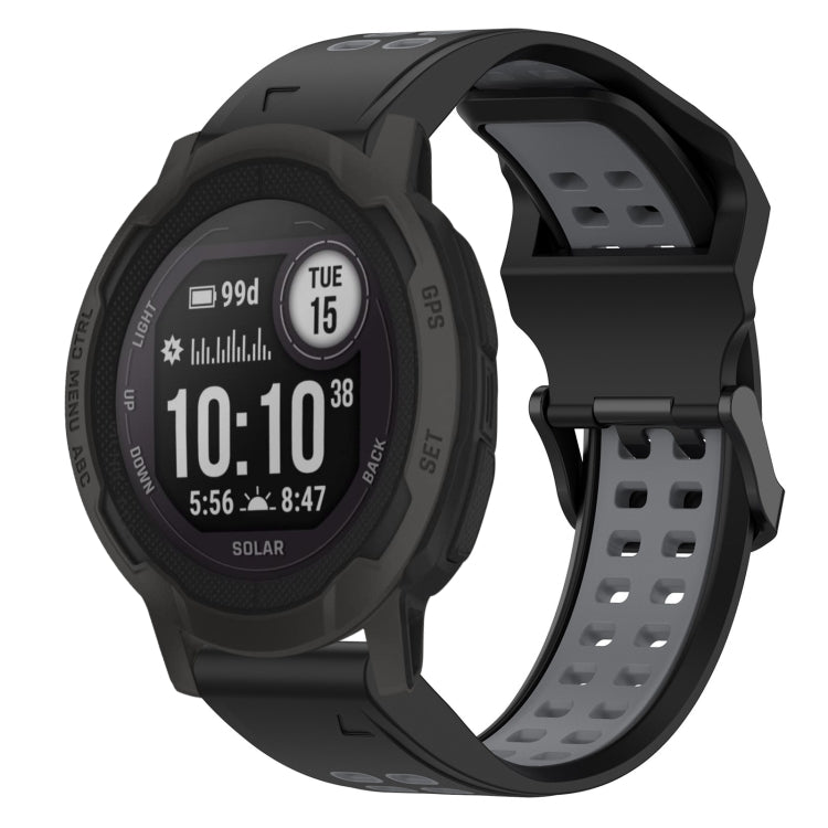 For Garmin Instinct 2 Solar Two Color Reverse Buckle 22mm Silicone Watch Band(Black+Grey)