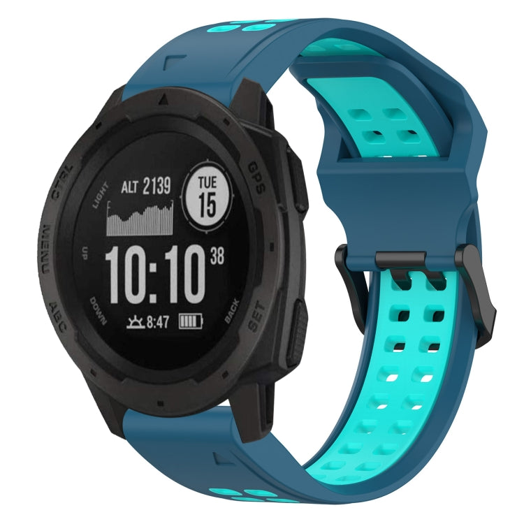 For Garmin Instinct Two Color Reverse Buckle 22mm Silicone Watch Band(Blue+Teal)