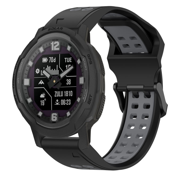 For Garmin Instinct Crossover Solar Two Color Reverse Buckle 22mm Silicone Watch Band(Black+Grey)