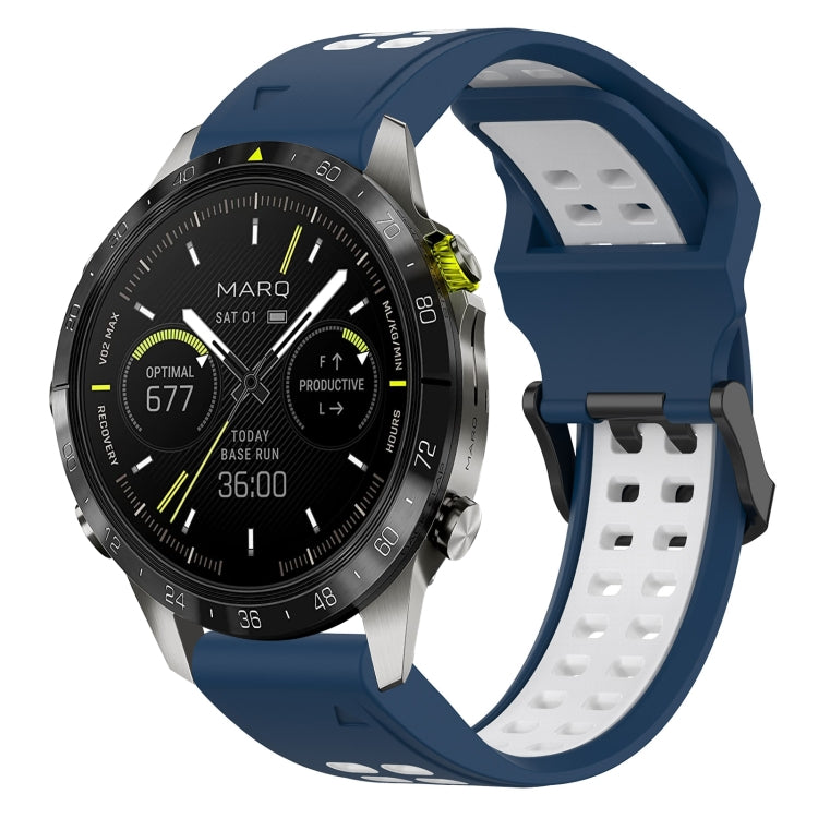 For Garmin MARQ Athlete (Gen 2) Two Color Reverse Buckle 22mm Silicone Watch Band(Blue+White)