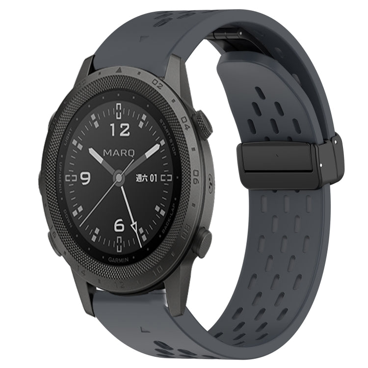 For Garmin MARQ Commander Hole Folding Buckle 22mm Silicone Watch Band(Dark Gray)