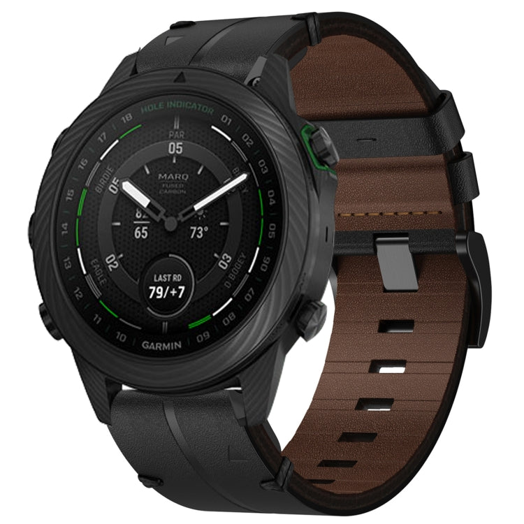 For Garmin MARQ Golfer Leather Textured 22mm Watch Band(Black)