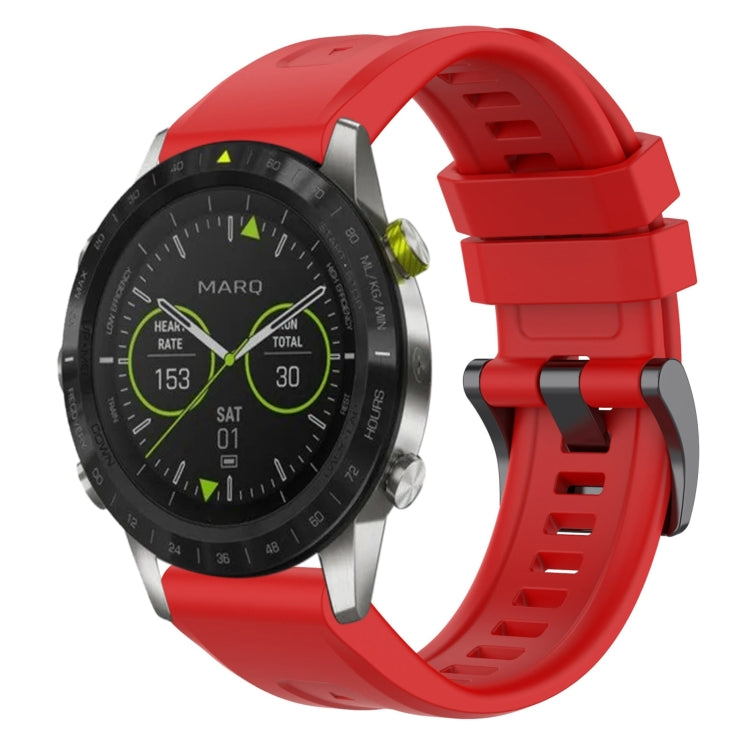 For Garmin MARQ Solid Color Black Buckle Silicone Quick Release Watch Band(Red)