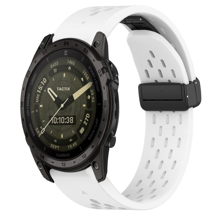 For Garmin Tactix 7 AMOLED Hole Folding Buckle 26mm Silicone Watch Band(White)