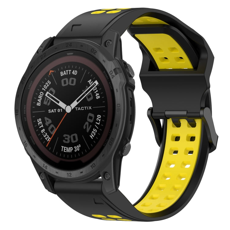 For Garmin TACTIX 7 Pro Two Color Reverse Buckle 26mm Silicone Watch Band(Black+Yellow)