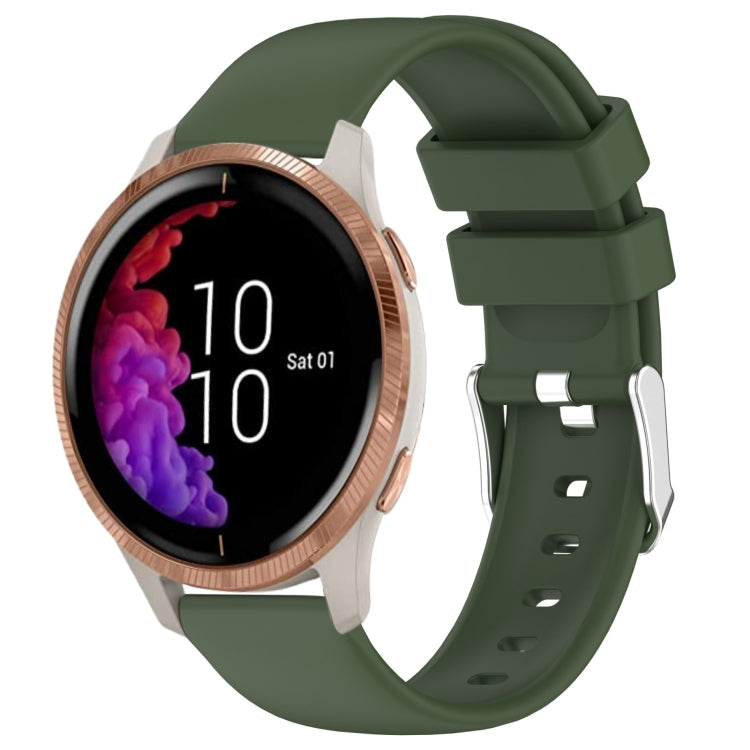 For Garmin Venu 20mm Smooth Solid Color Silicone Watch Band(Army Green)