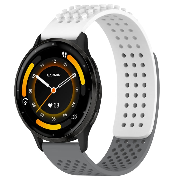 For Garmin Venu 3 22mm Holes Breathable 3D Dots Silicone Watch Band(White+Grey)