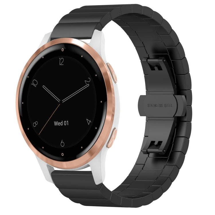 For Garmin Vivoactive 4S One Bead Butterfly Buckle Stainless Steel Metal Watch Band(Black)