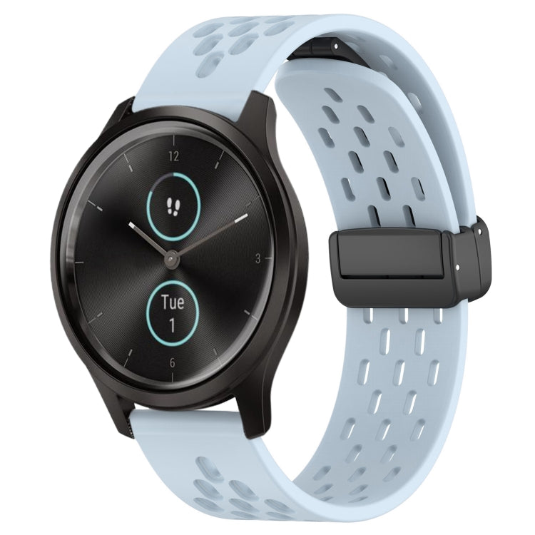 For Garmin VivoMove Style 20mm Folding Magnetic Clasp Silicone Watch Band(Light Blue)