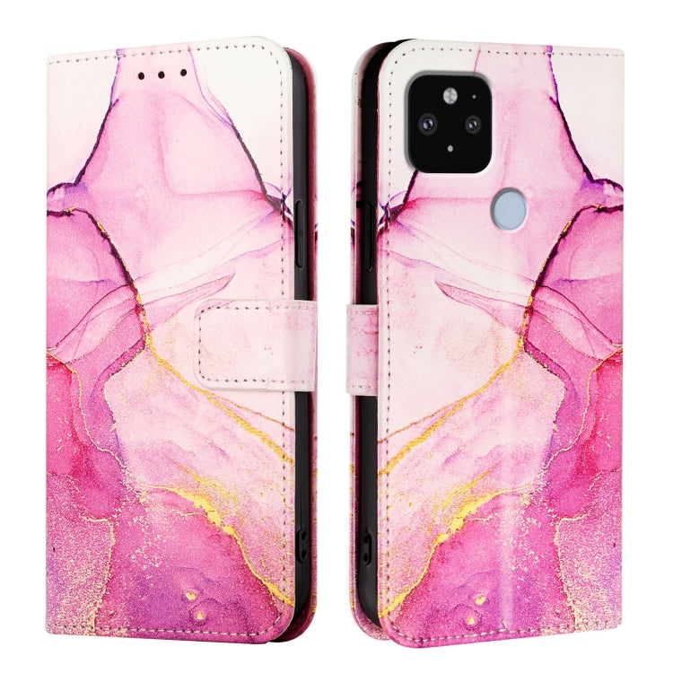 For Google Pixel 5 XL / 4a 5G PT003 Marble Pattern Flip Leather Phone Case(Pink Purple Gold)