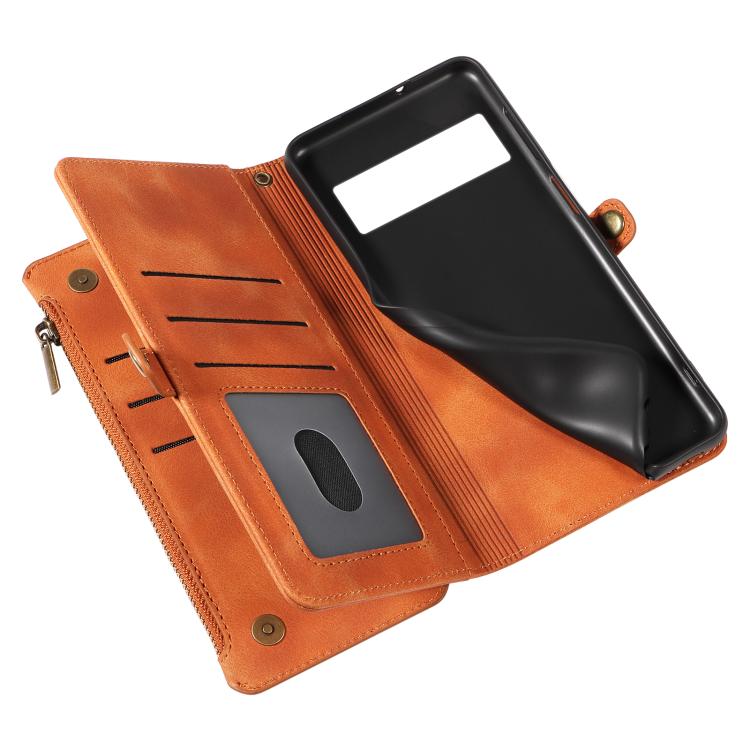 For Google Pixel 6 Pro Fantasy Multifunctional Zipper Wallet Leather Phone Case(Orange)