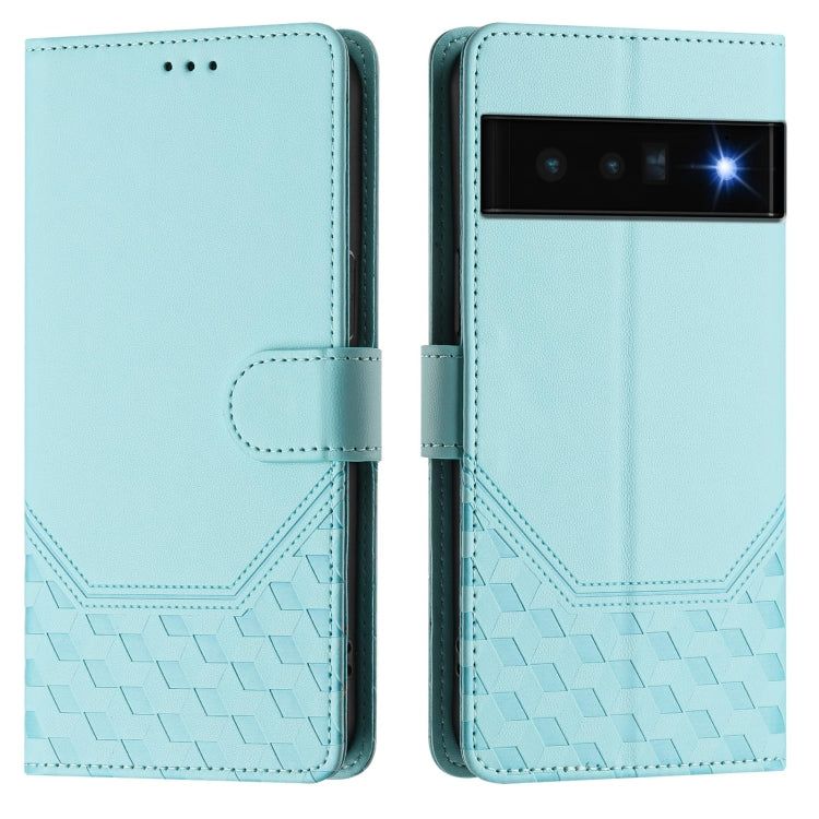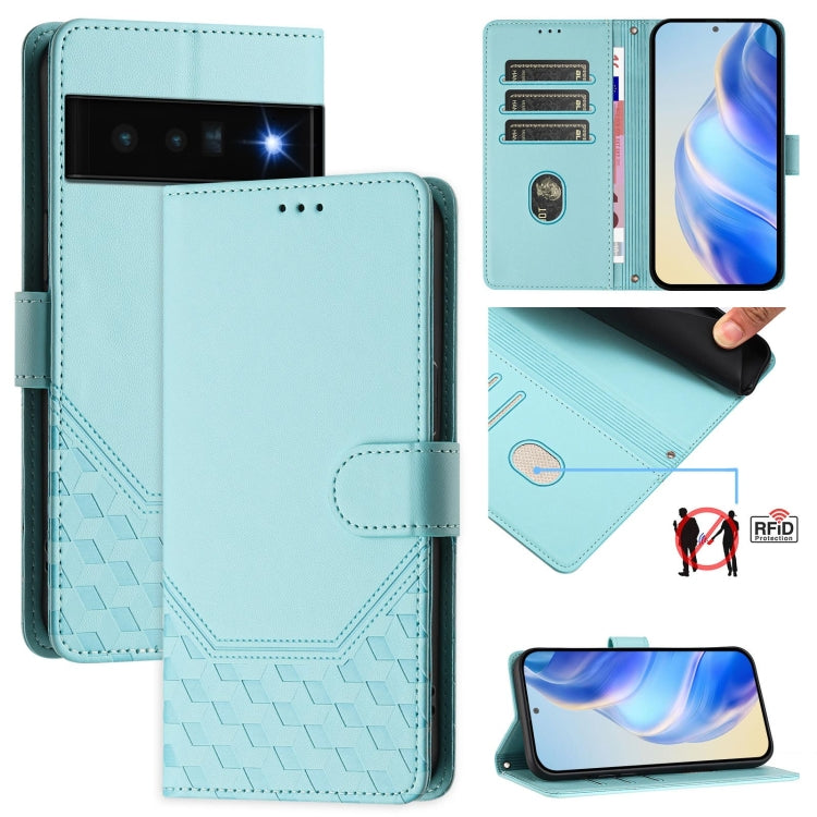 For Google Pixel 6 Pro Honeycomb Embossing RFID Leather Phone Case(Mint Green)