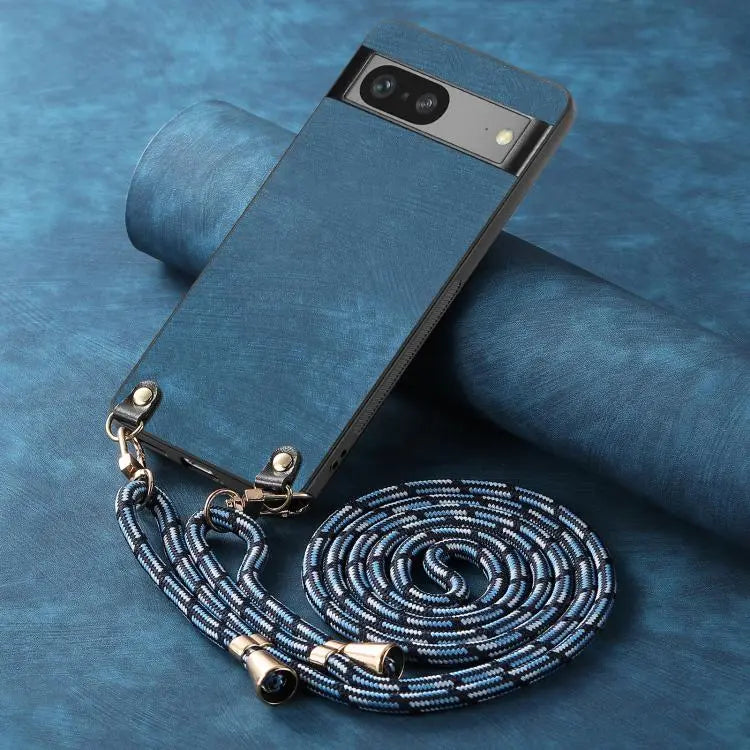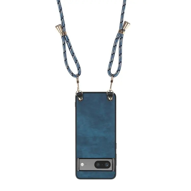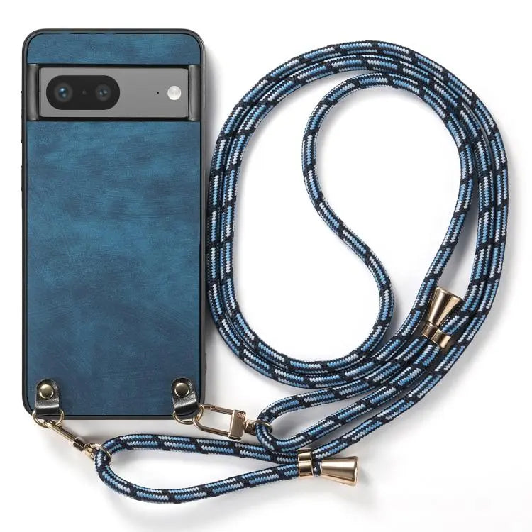 For Google Pixel 6 Vintage Leather PC Back Cover Phone Case with Crossbody Strap(Blue)