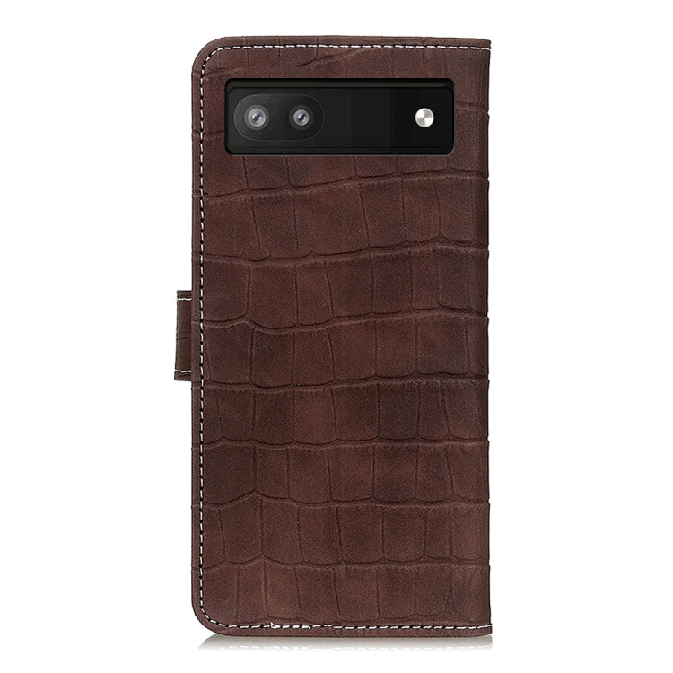 For Google Pixel 6a Crocodile Texture Flip Leather Phone Case with Holder & Card Slots(Brown)