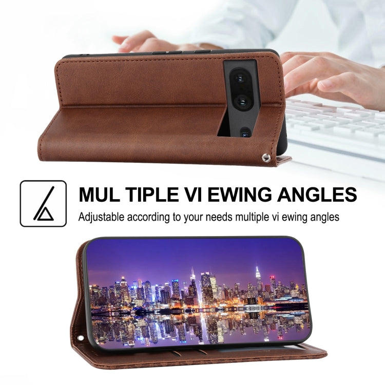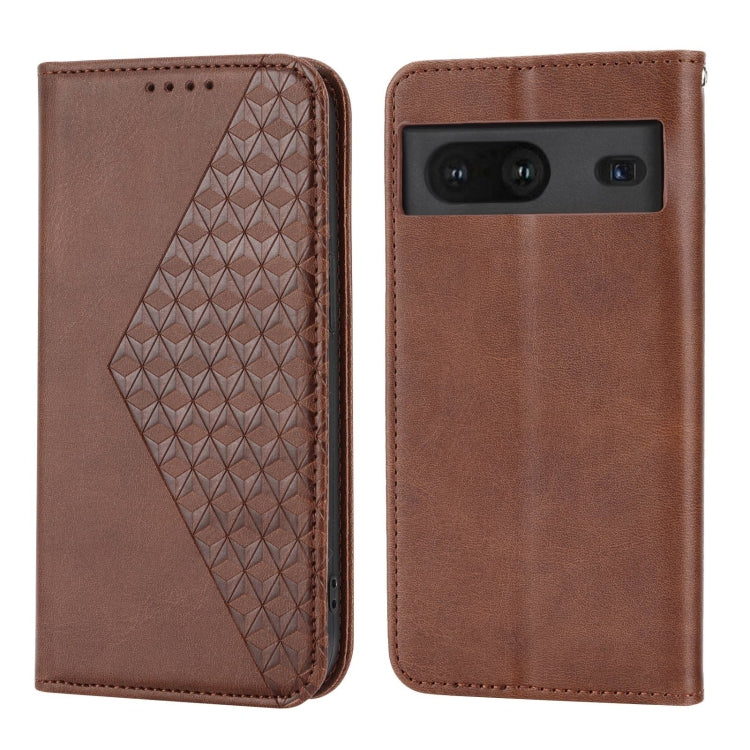 For Google Pixel 6a Cubic Grid Calf Texture Magnetic Closure Leather Phone Case(Brown)