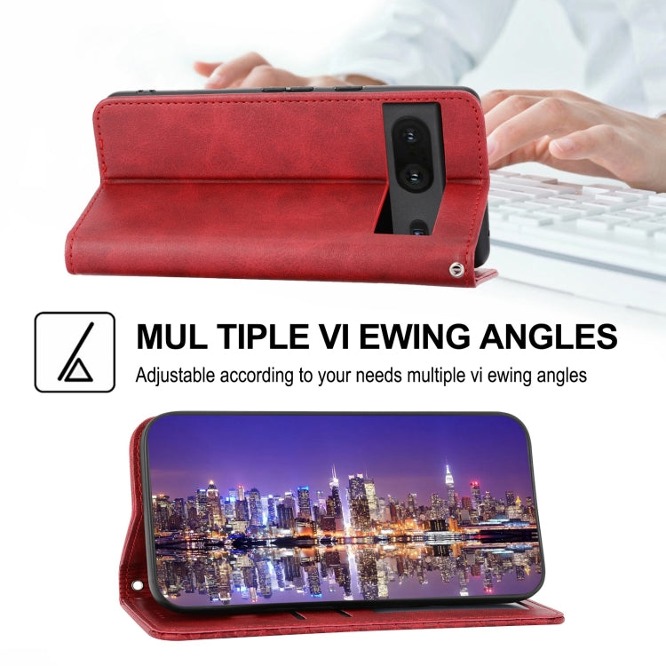 For Google Pixel 6a Cubic Grid Calf Texture Magnetic Closure Leather Phone Case(Red)