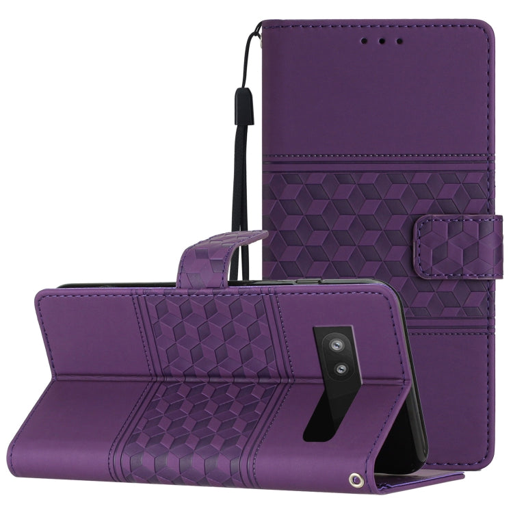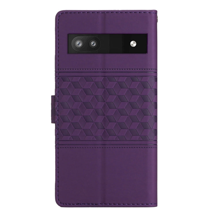 For Google Pixel 6a Diamond Embossed Skin Feel Leather Phone Case with Lanyard(Purple)