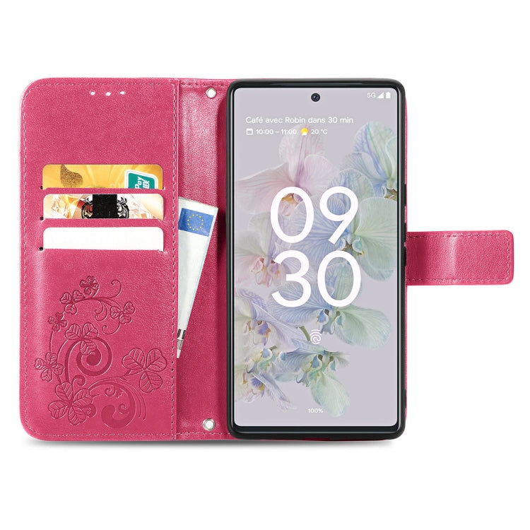 For Google Pixel 6a Four-leaf Clasp Embossed Buckle Leather Phone Case(Magenta)