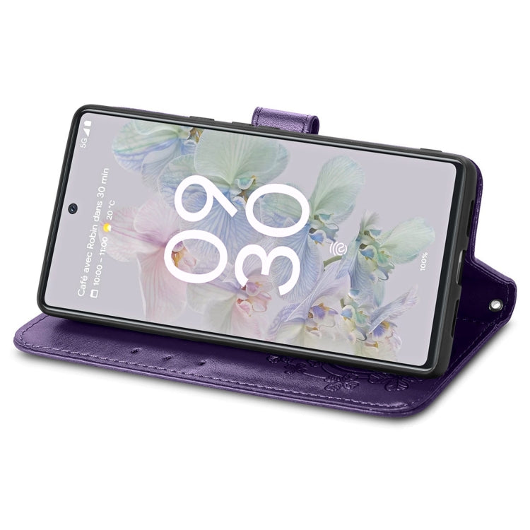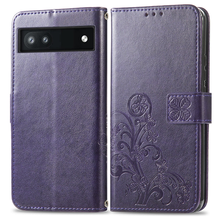 For Google Pixel 6a Four-leaf Clasp Embossed Buckle Leather Phone Case(Purple)