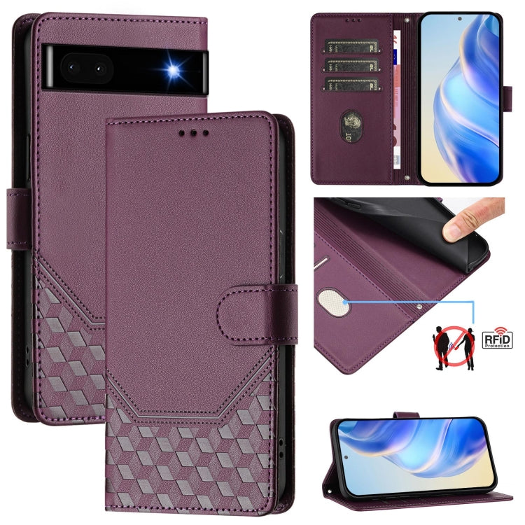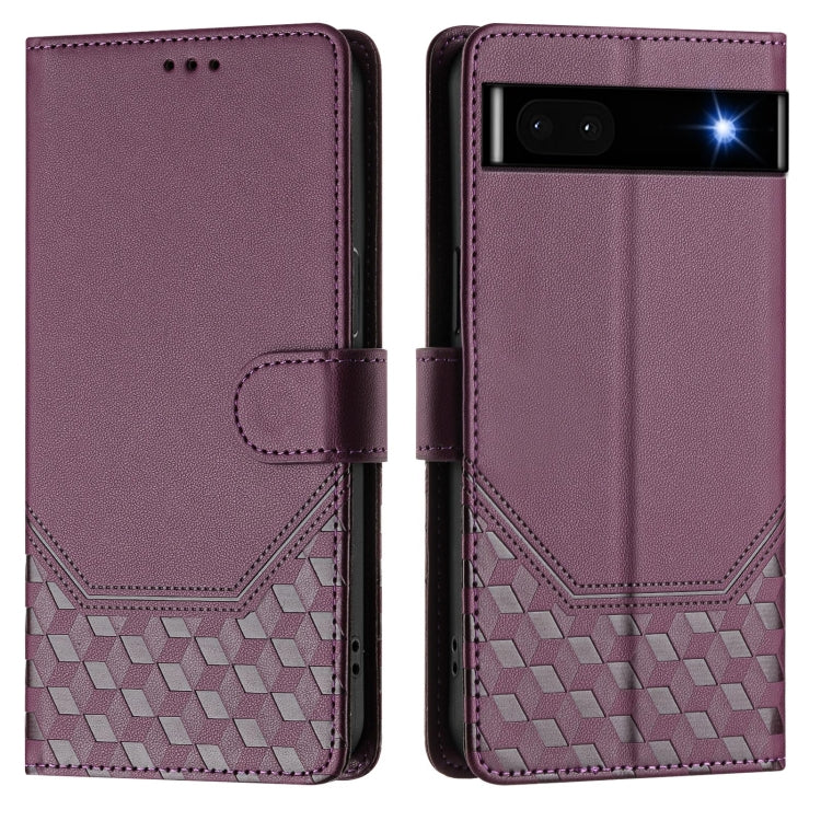 For Google Pixel 6a Honeycomb Embossing RFID Leather Phone Case(Violet)