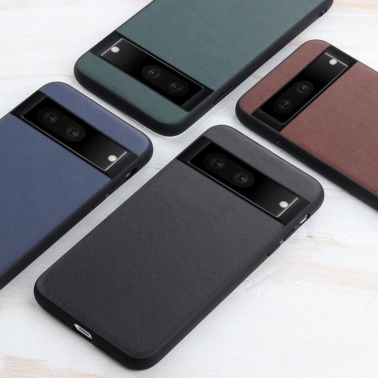For Google Pixel 7 Accurate Hole Lambskin Texture Genuine Leather Phone Case(Blue)