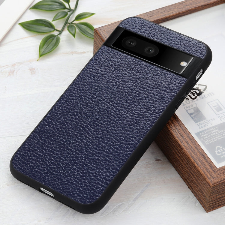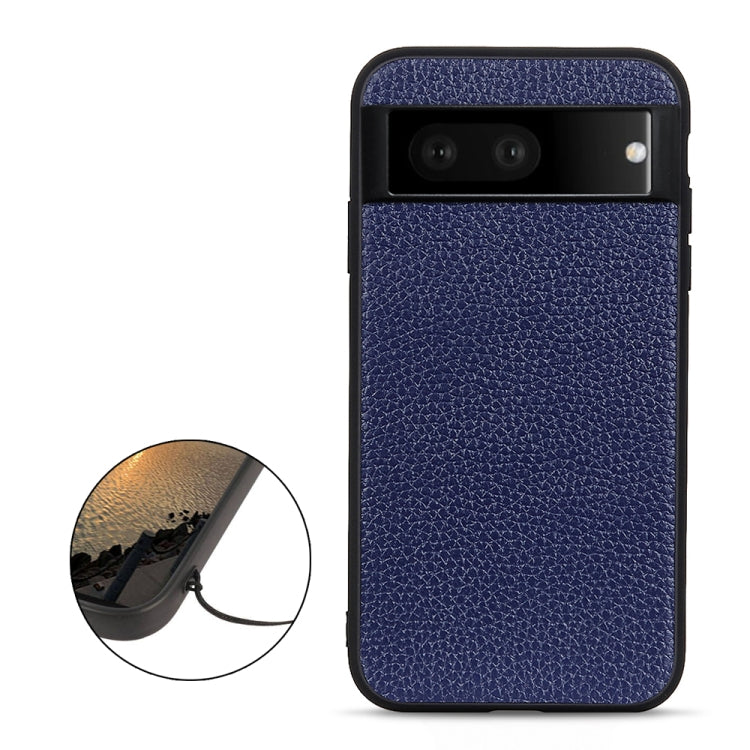 For Google Pixel 7 Accurate Hole Litchi Texture Genuine Leather Phone Case(Blue)