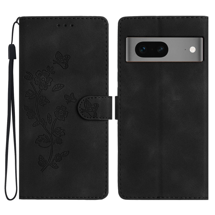 For Google Pixel 7 Flower Butterfly Embossing Pattern Leather Phone Case(Black)