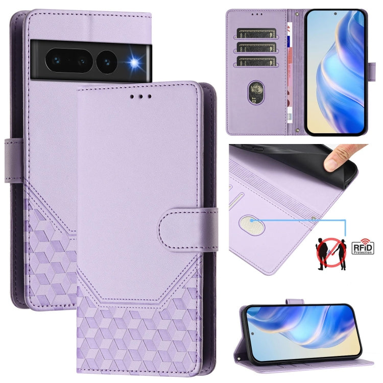For Google Pixel 7 Pro Honeycomb Embossing RFID Leather Phone Case(Light Purple)