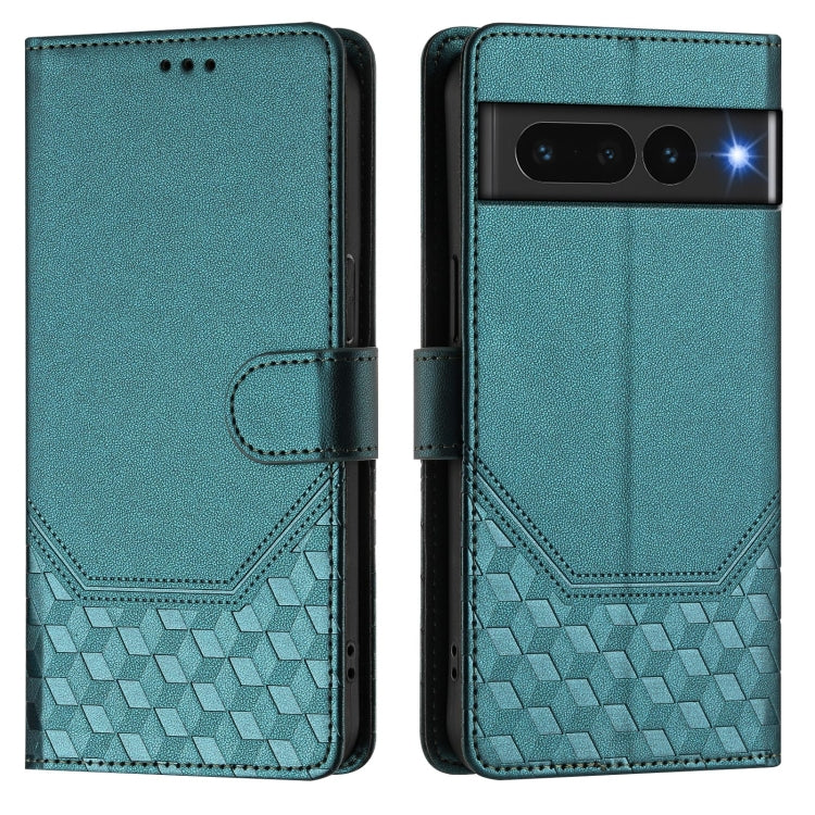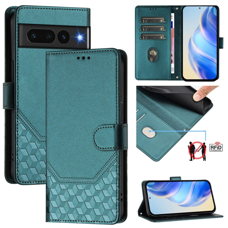For Google Pixel 7 Pro Honeycomb Embossing RFID Leather Phone Case(Peacock Green)