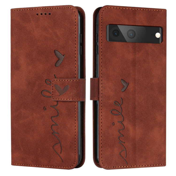 For Google Pixel 7 Skin Feel Heart Pattern Leather Phone Case(Brown)