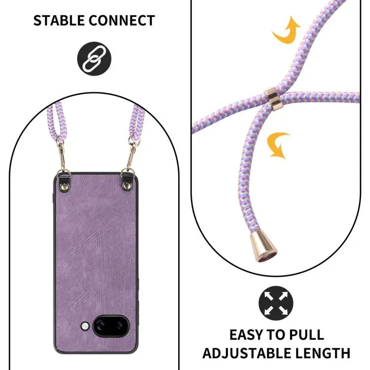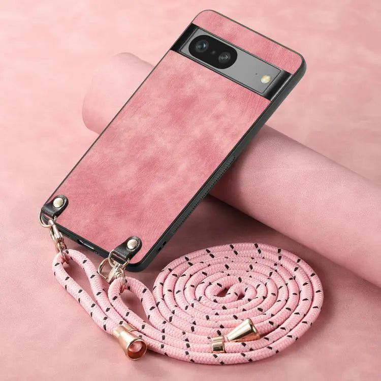 For Google Pixel 7 Vintage Leather PC Back Cover Phone Case with Crossbody Strap(Pink)