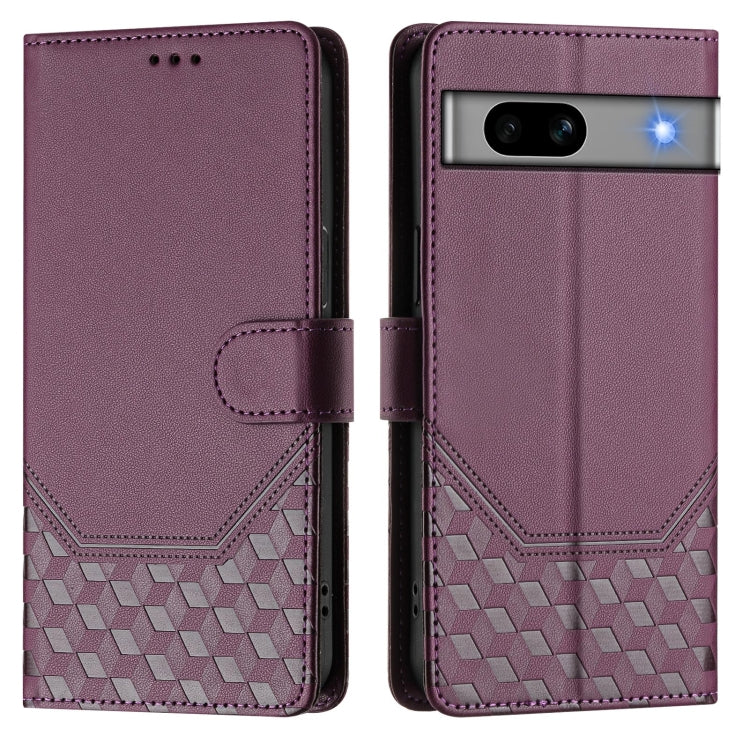 For Google Pixel 7a Honeycomb Embossing RFID Leather Phone Case(Violet)