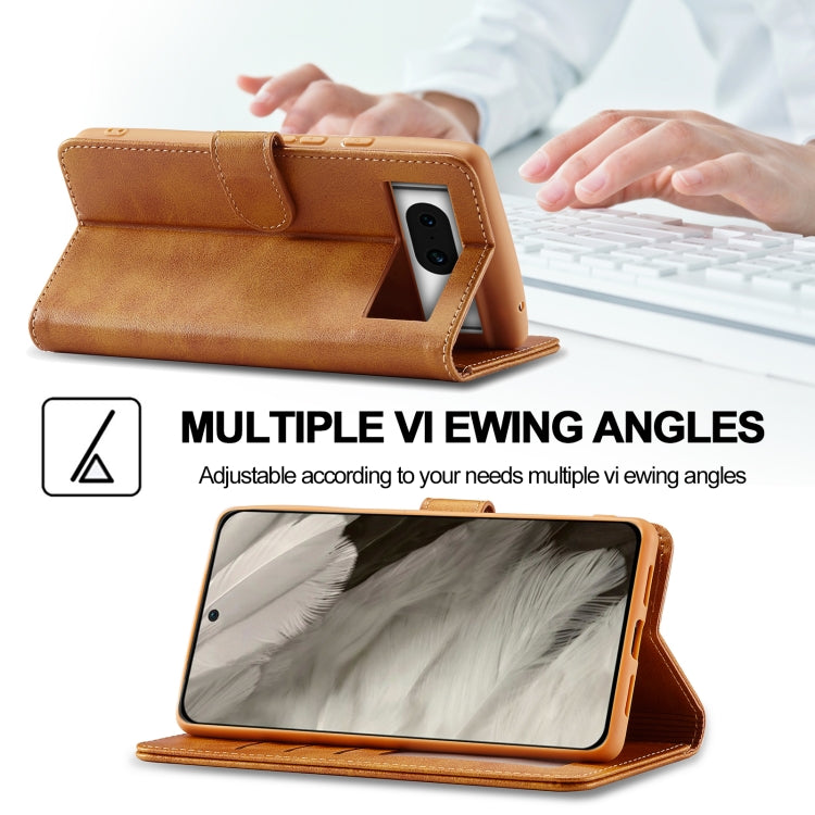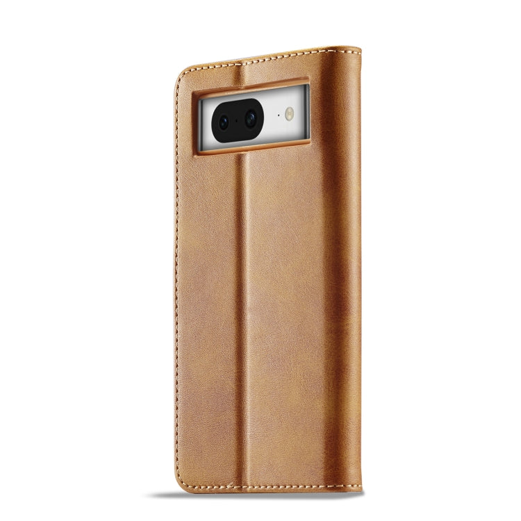 For Google Pixel 7a LC.IMEEKE Calf Texture Flip Leather Phone Case(Yellow)