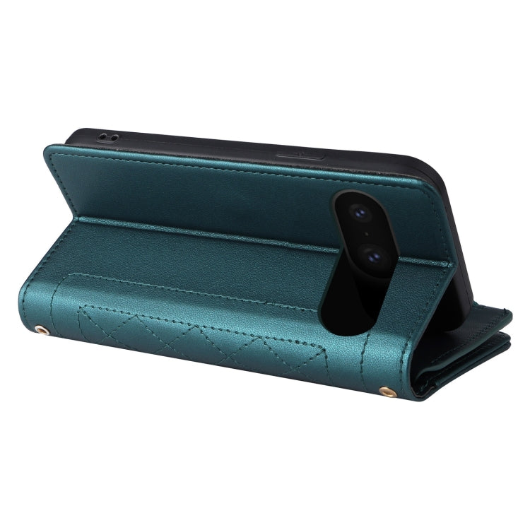 For Google Pixel 8 Crossbody Zipper Wallet Rhombus Leather Phone Case(Green)
