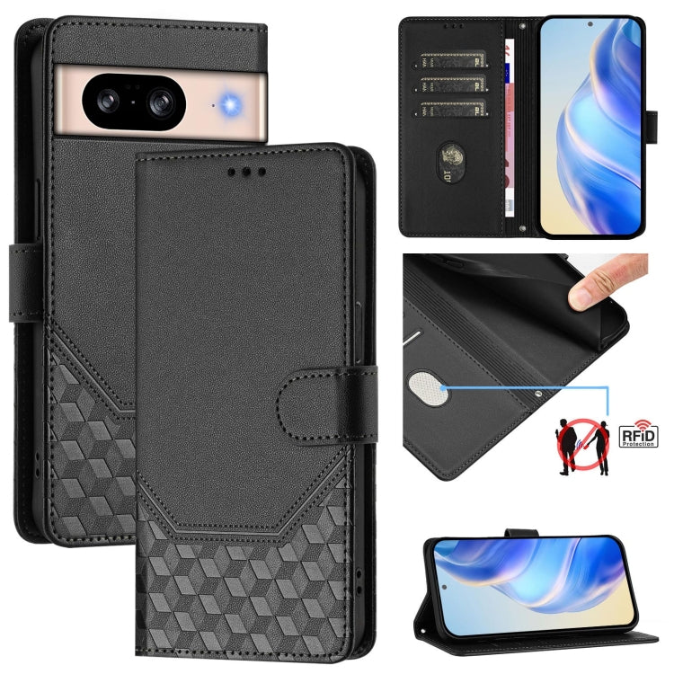 For Google Pixel 8 Honeycomb Embossing RFID Leather Phone Case(Black)