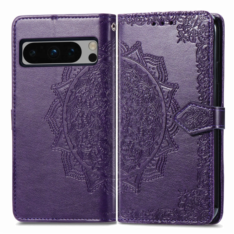 For Google Pixel 8 Pro Mandala Flower Embossed Leather Phone Case(Purple)