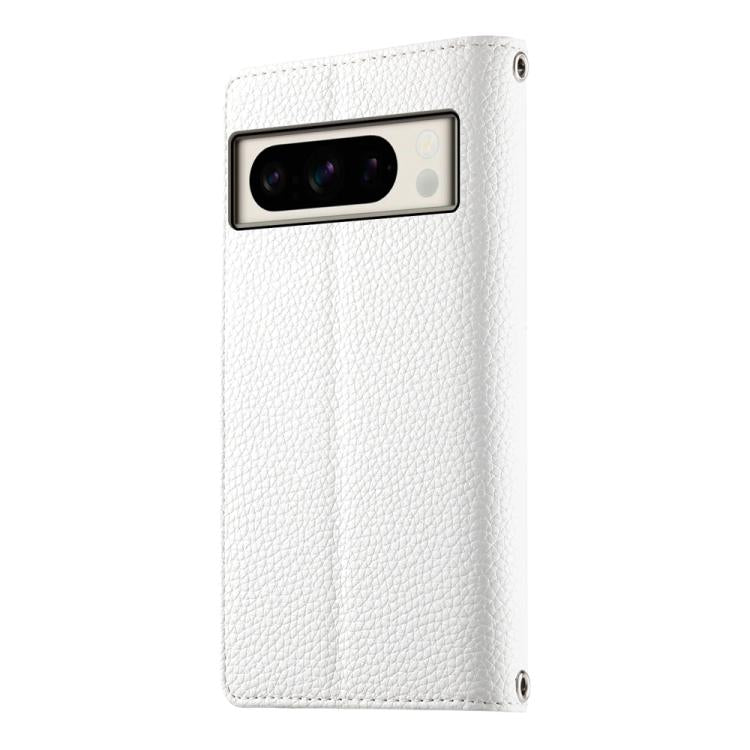 For Google Pixel 8 Pro Stitching Multi-card Zipper Wallet Leather Phone Case with Short Strap(White)