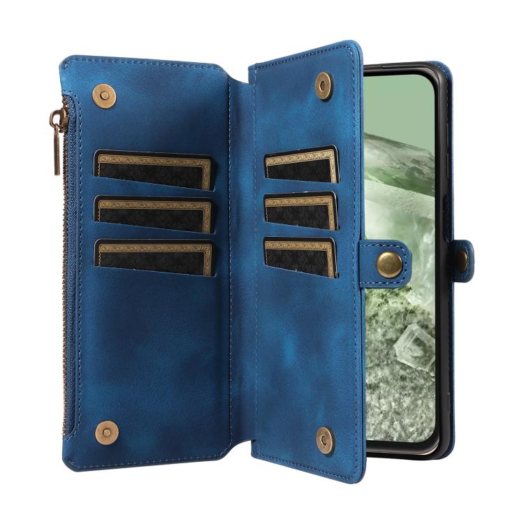 For Google Pixel 8a Fantasy Multifunctional Zipper Wallet Leather Phone Case(Blue)
