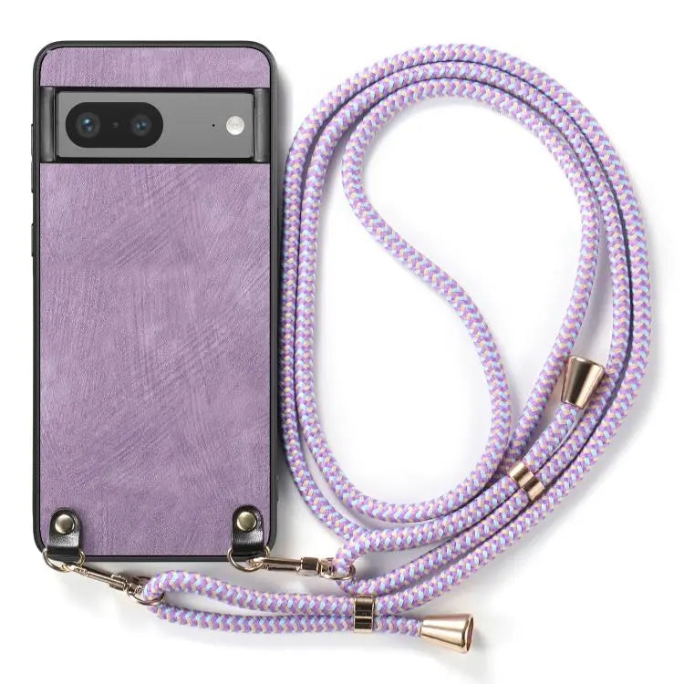For Google Pixel 9 / 9 Pro Vintage Leather PC Back Cover Phone Case with Crossbody Strap(Purple)
