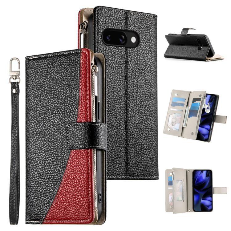 For Google Pixel 9a Stitching Multi-card Zipper Wallet Leather Phone Case with Short Strap(Black)