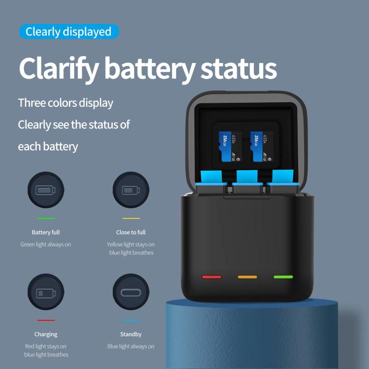 1. Suitable for GoPro HERO13 Black, the smart battery butler that can store and charge two storage cards and three batteries at the same time.