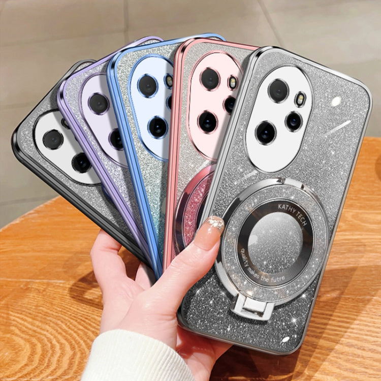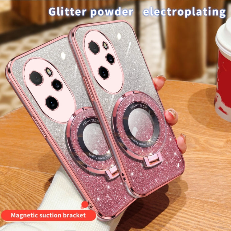 For Honor 100 Pro Plated Gradient Glitter Round Holder TPU Phone Case(Pink)