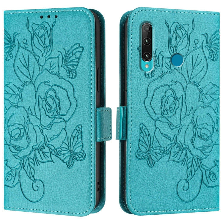 For Honor 20 Lite / 10i / 20e Embossed Rose RFID Anti-theft Leather Phone Case(Light Blue)