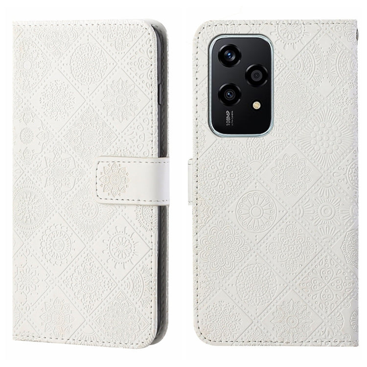 For Honor 200 Lite Global Ethnic Style Embossed Pattern Leather Phone Case(White)