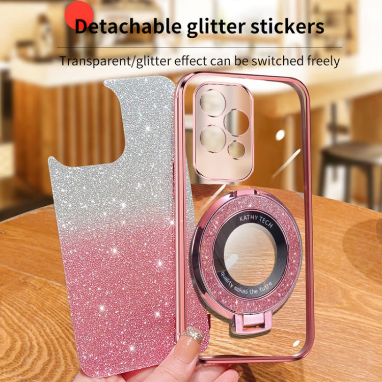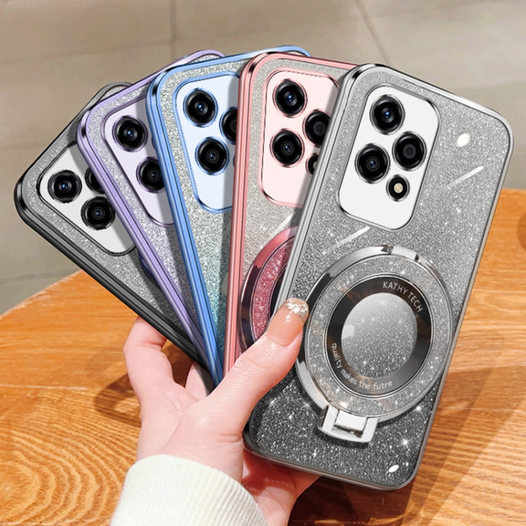 For Honor 200 Lite Global Plated Gradient Glitter Round Holder TPU Phone Case(Black)