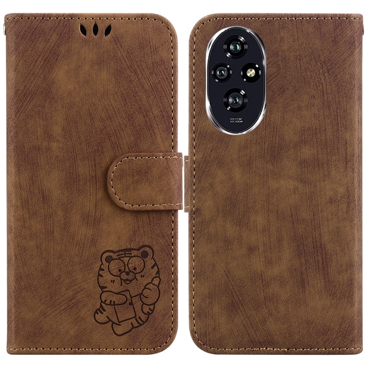 For Honor 200 Little Tiger Embossed Leather Phone Case(Brown)