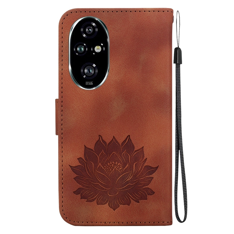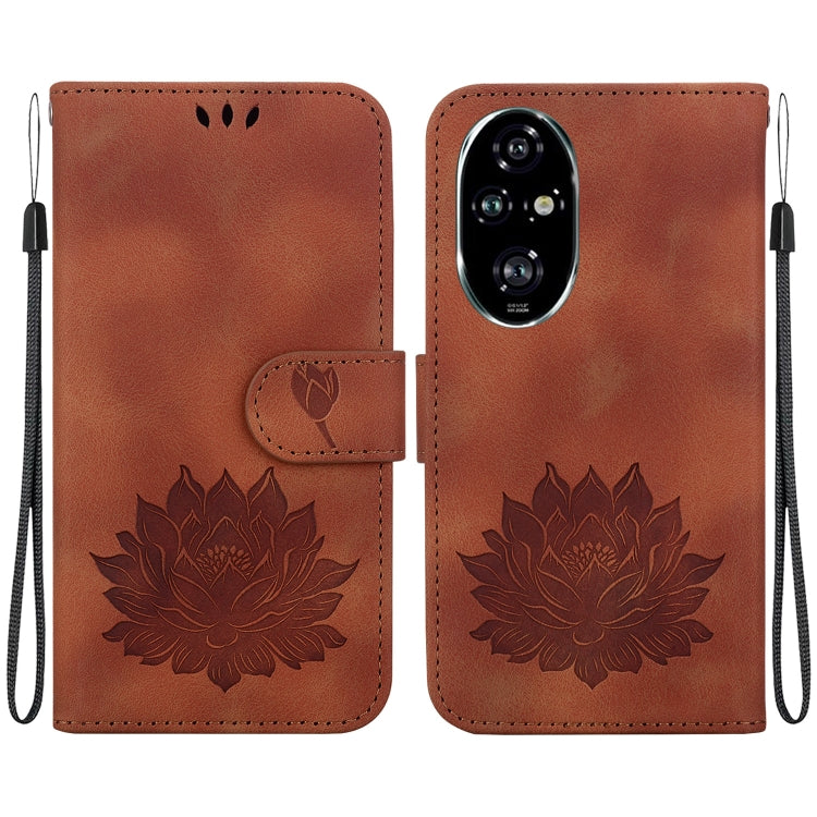 For Honor 200 Pro Lotus Embossed Leather Phone Case(Brown)