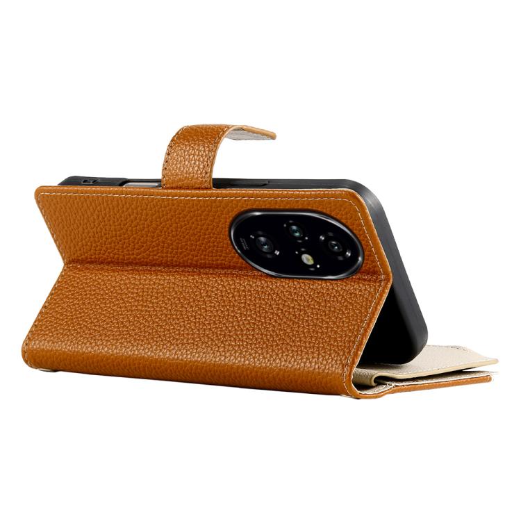 For Honor 200 Pro Stitching Multi-card Zipper Wallet Leather Phone Case with Short Strap(Brown)