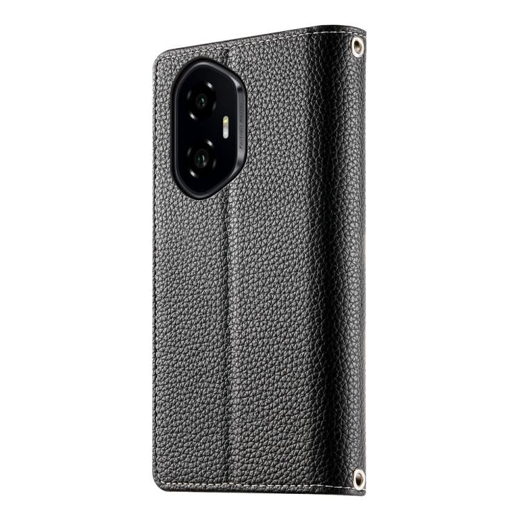 For Honor 300 Stitching Multi-card Zipper Wallet Leather Phone Case with Short Strap(Black)