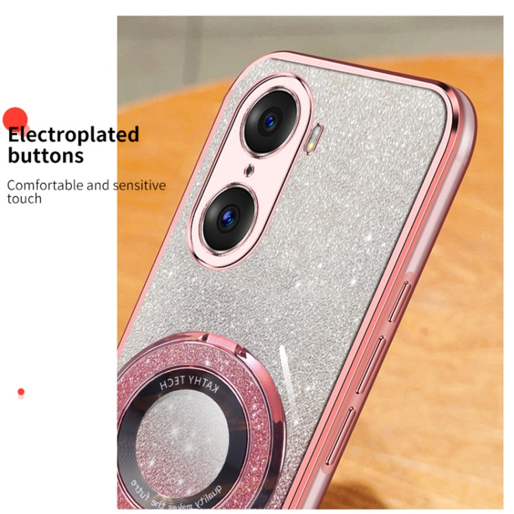For Honor 60 Pro Plated Gradient Glitter Round Holder TPU Phone Case(Silver)